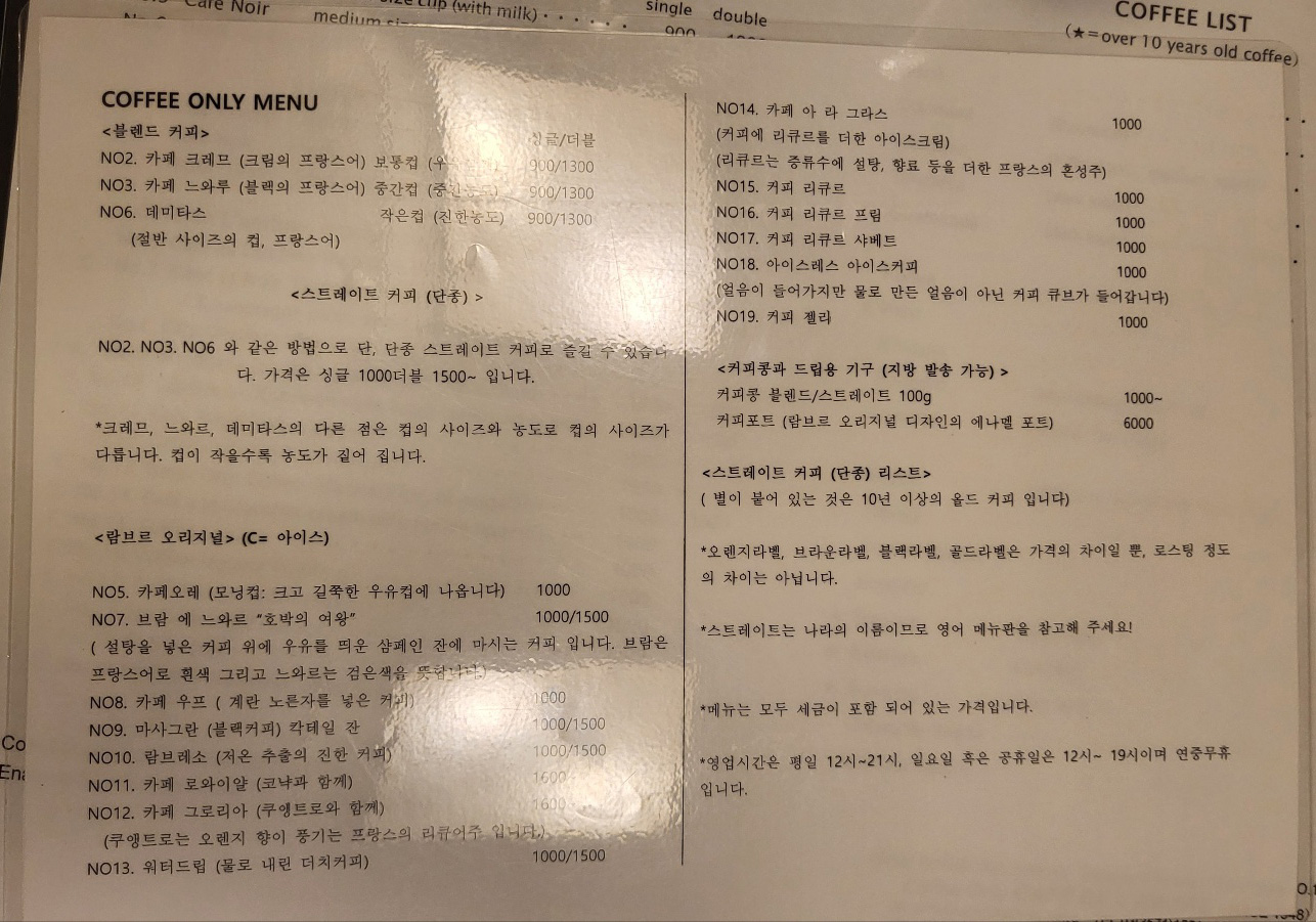 저희는 No7. 브람 에 누아르 "호박의 여왕", "No.18. 아이스레스 아이스커피"를 주문했습니다.